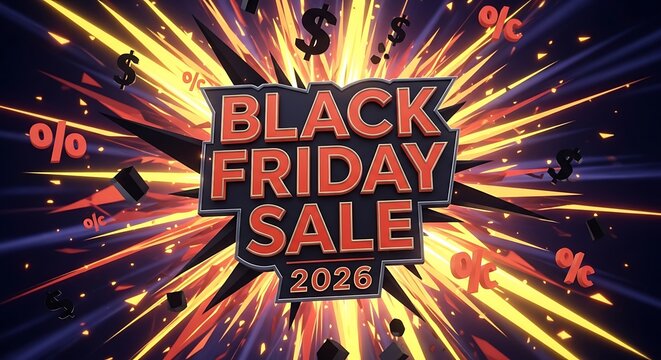 Get ready for Black Friday Sale 2026 with stunning deals and discounts, shop now and save money with this vibrant promotional design for retail