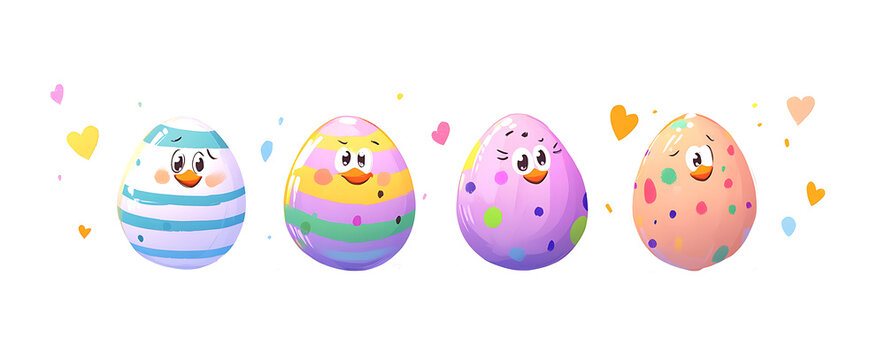 Easter eggs painted in different colors isolated on white background PNG.AI GENERATED
