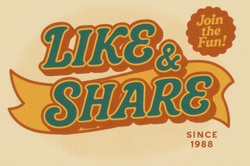 LIKE & SHARE banner with Join the Fun! promo since 1988, retro style, vibrant social engagement offer.