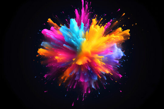 super slowmotion explosion colorful powder dark backdrop vibrant lumps fly upward mix smoke stunning visual display olated colours black speed background dust holi flowing exploding streak