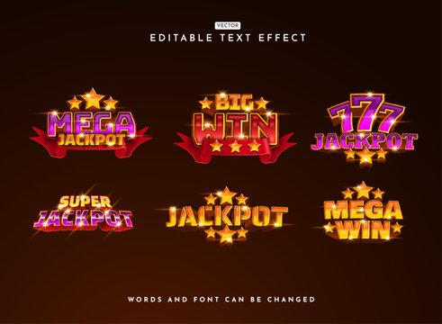 Set of Glossy Editable Text Effects — Mega Win, Big Win, and Jackpot Frame Banner Templates for Casino, Slot, and Game Design