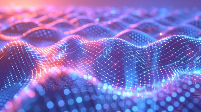 Futuristic neon light beams in vibrant blue and pink, creating an abstract technology-inspired background.
