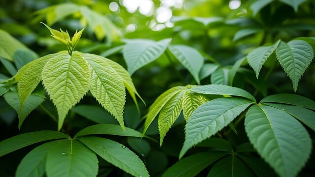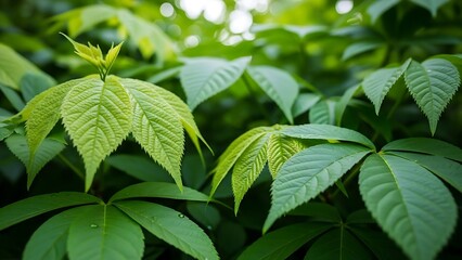 Lush green foliage close up freshness of nature and spring growth