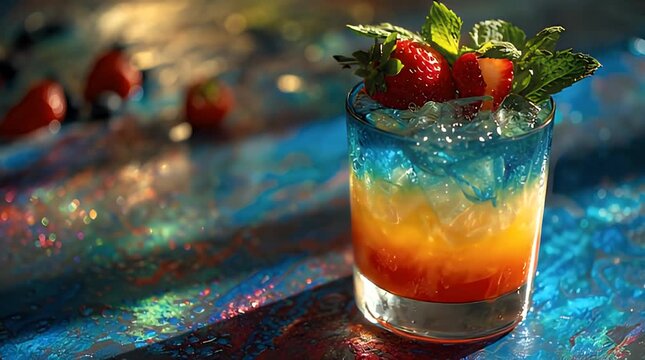 Vibrant nightclub event announcement with dynamic cocktail imagery