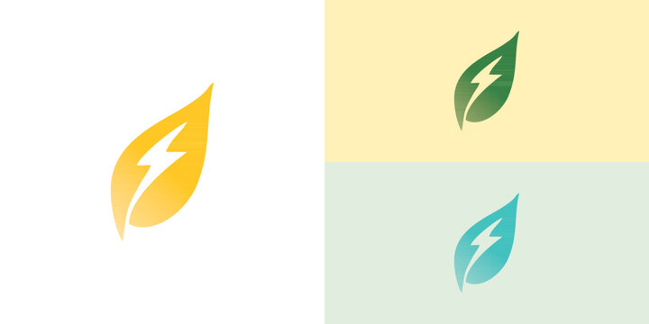Green energy logo concept featuring leaves and lightning bolts showcasing renewable power and sustainable technology, vibrant and minimalist design for eco-friendly brands