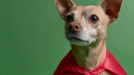 Heroic Chihuahua adorned in vibrant red cape, noble canine savior, Barkentine's Day, furry guardianship, whimsical pet valor