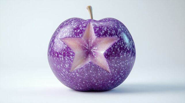 Unique purple apple with carved star design showcasing vibrant colors and artistic food presentation