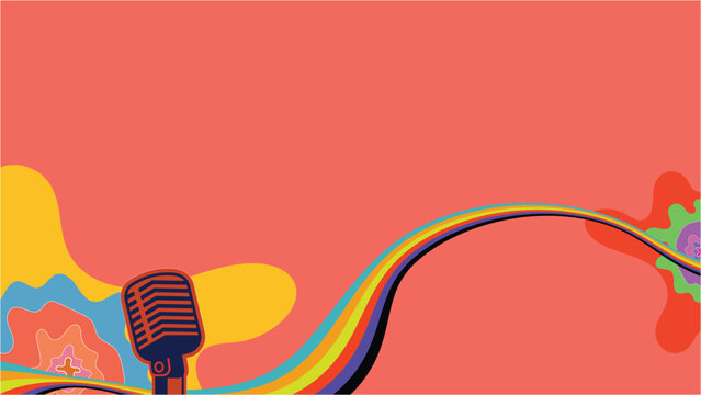 halftone collage, talk show podcast, modern graphic with a vintage mic, dynamic design, and vibrant energy. Talk Show, Live Show