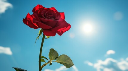 AI generated illustration of bright sun shines on a vibrant red rose in full bloom