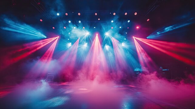 A concert scene with RGB laser lights cutting through the smoke, creating a vibrant display that enhances the music's rhythm and energy
