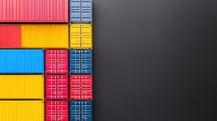 Colorful shipping containers stacked against a dark background, showcasing a vibrant arrangement ideal for logistics and transportation themes.cargo management warehouse scheduling