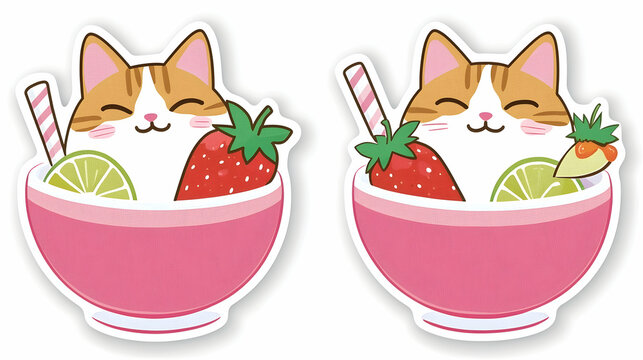 A vibrant smoothie cup icon with a straw, surrounded by fruit slices and ice cubes.