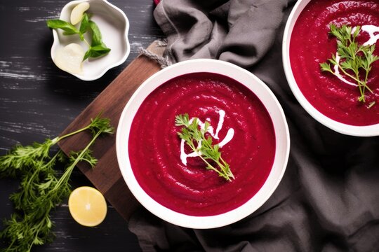 top view of a vibrant beetroot detox soup
