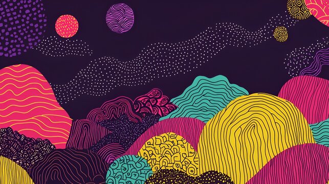 Night sky burst, stars, clouds, comic style, graphic design