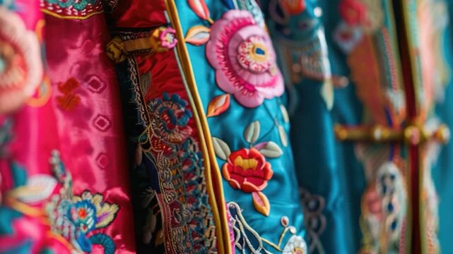 Video clip A collection of bright and vibrant ties displayed on a wall, great for office or creative spaces