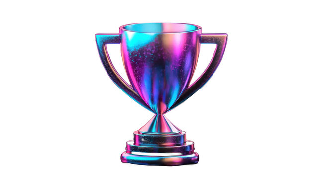 A shiny, vibrant trophy rendered in a futuristic style, showcasing glowing neon colors against a transparent background, emphasizing its modern design.