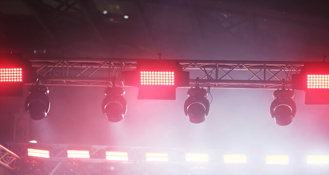 Electric guitars close-up with detailed strings and frets, stage lights shining, rock music energy captured, instrument craftsmanship and vibrant performance vibe in high definition imagery