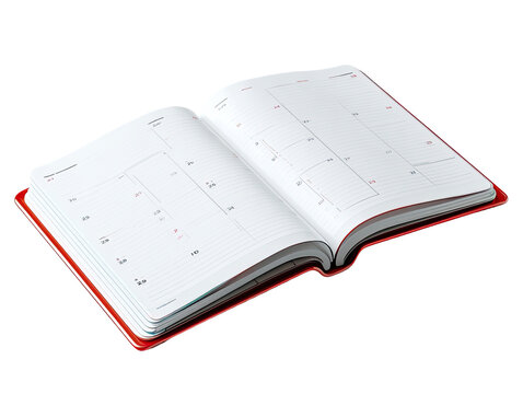 Open red planner, showing monthly and daily pages