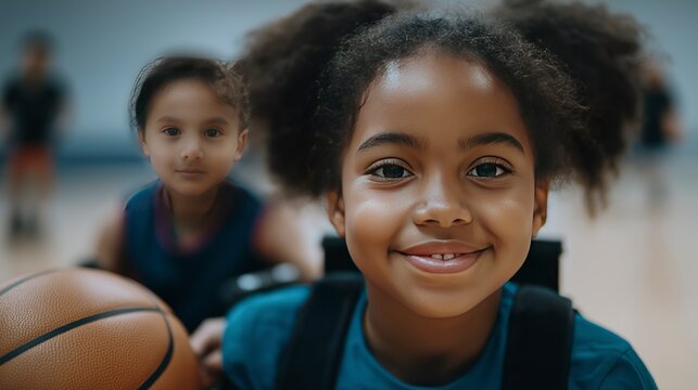 A cheerful girl smiling in a vibrant classroom filled with colorful educational elements.