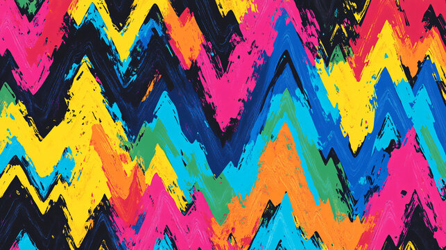 Colorful zigzag pattern with vibrant gradients in orange, teal, and pink.