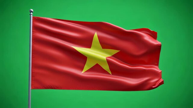 Flag of Vietnam waving on a flagpole over a green screen. National symbol on chromakey backdrop for patriotism concept.