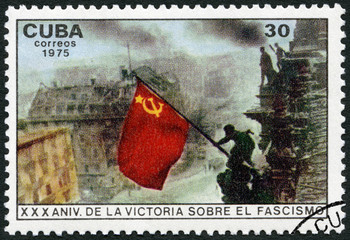 CUBA - 1975: shows Raising red flag over Reichstag, Berlin