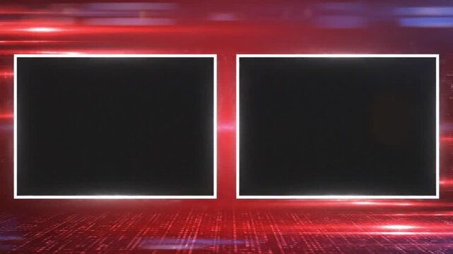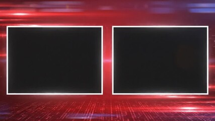 Futuristic red broadcast backdrop digital background with two glowing rectangular screens perfect for video end cards