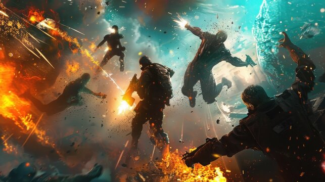 Mock-up of first person shooter video game gameplay made with Generative AI.