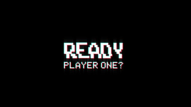 ready player one 8-bit pixel text animation with dynamic glitch distortion effect. dynamic motion video game black green screen. ready player 1. one ready player
