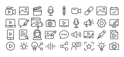 Collection of various outline style videography icons