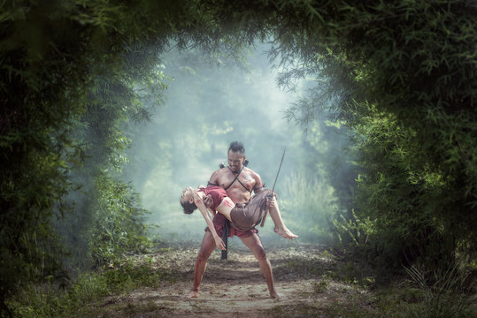 On the battlefield, Traditional warrior in Thailand.
