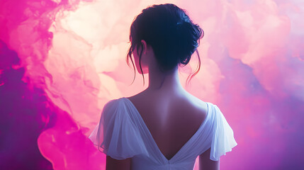 No bra day awareness with woman in sports attire back view