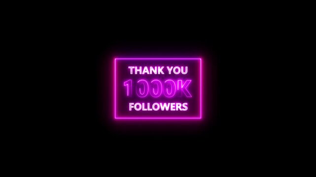 Animated neon sign thanking viewers for reaching one million followers on social media
