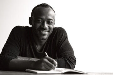 joyful man is writing in his gratitude journal embodying mindfulness and appreciation