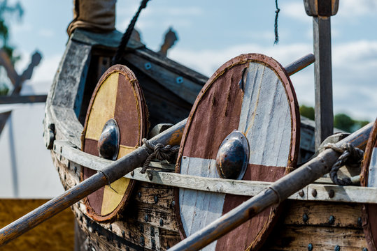 Wooden viking snekkja longship type, close-up, Finland