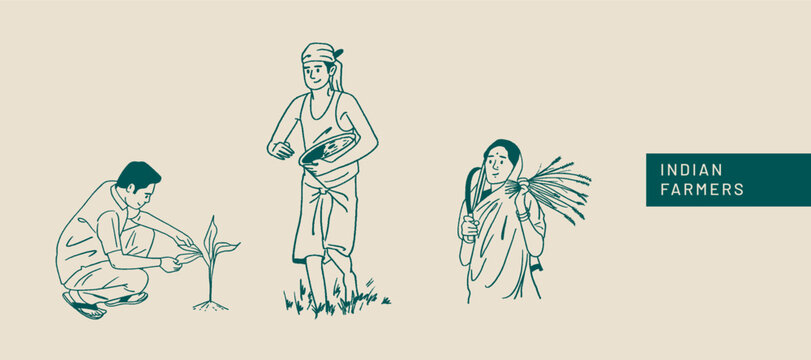 Farmer's Day, Indian people, farmers working on farms, hand-drawn Vector illustrations of men and women posing