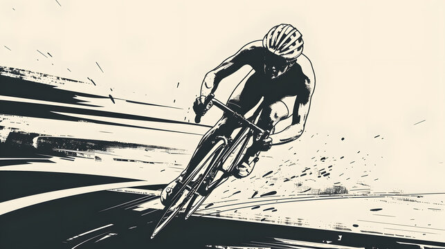 vintage black and white sketch sport bicycle racing pop art classic illustration bicycle racer wallpaper copy space
