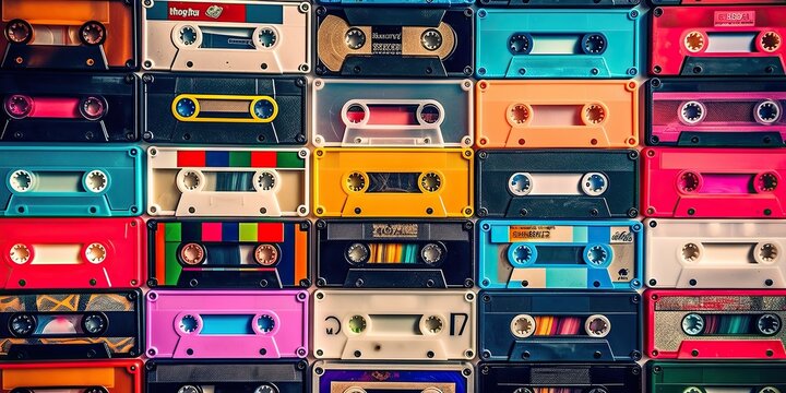 Collection of retro cassette tapes. Generative AI