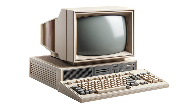 Vintage computer with monitor keyboard and mouse isolated on transparent background