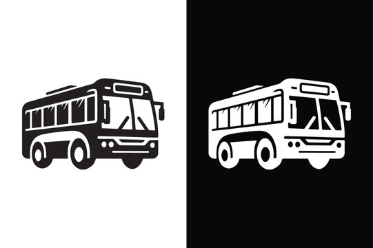 Black and White Bus Icon in Silhouette for Vector Designs.