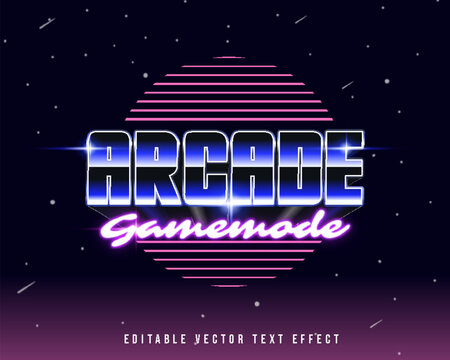 3D arcade game mode text effect. editable text style with sci-fi and neon glow light theme