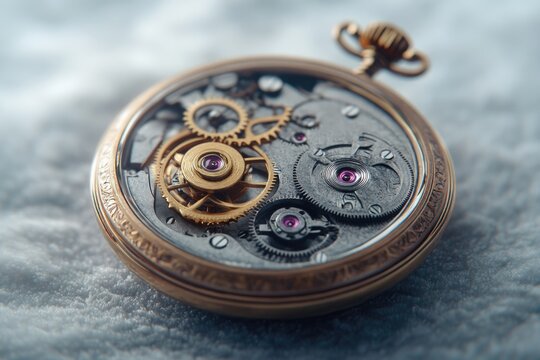 Pocket Watch Mechanism: Intricate details of a vintage pocket watch mechanism, showcasing the gears, springs, and intricate workings of this timeless timepiece.
