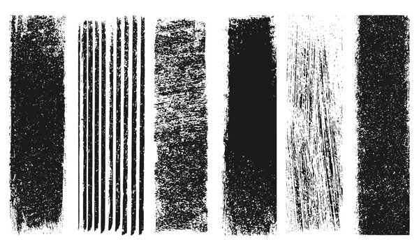 Relief printing linocut vector with grungy lino ink textures, stripes of various length, rough rectangle shapes, paint roller stains, textured backgrounds set, geometric frame, design illustration