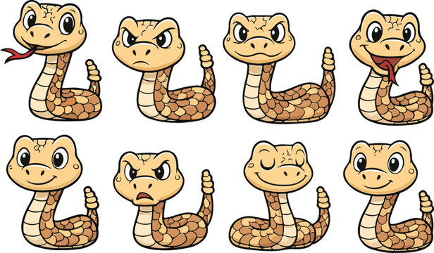 vector illustration of rattlesnake snake viper funny cute cartoon mascot character cartoon with 8 poses 02