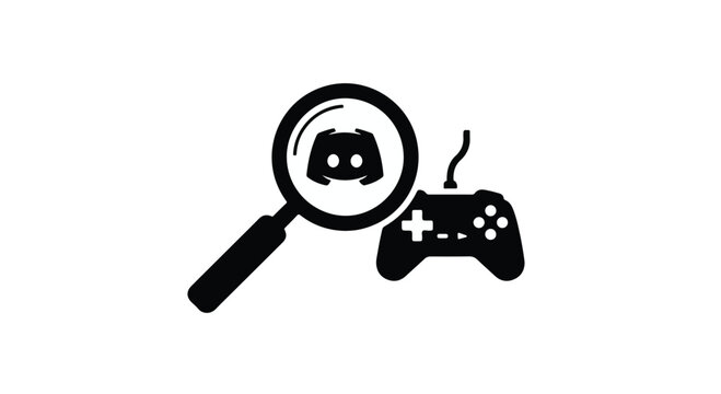 Searching for gaming community and connection with a controller and magnifying glass icon