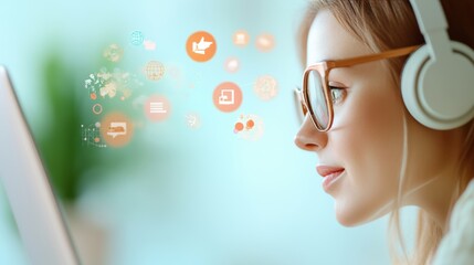 Customer support representative with headset for service promotions