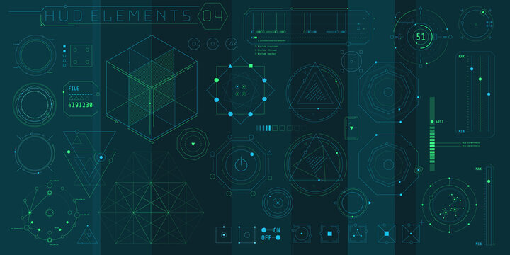 A set of HUD geometric elements for a futuristic interface.