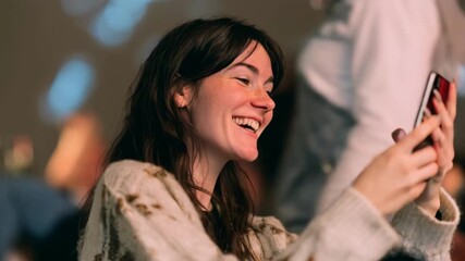 Medium shot of a fan engaging with live streaming on a mobile device reacting excitedly to realtime interactions and chat features during a virtual event.
