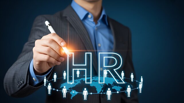 Futuristic human resources system with glowing digital candidate profiles recruitment innovation and virtual hiring technology for employee management