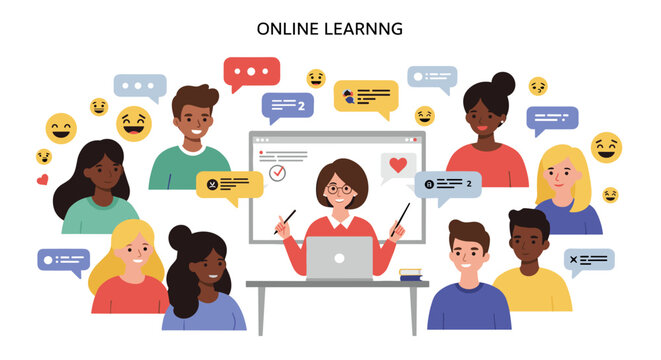 Modern classroom with students in online lecture